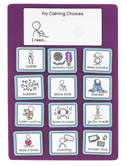 Help communicate different calming strategies using this visual chart which allows someone to voice their needs.