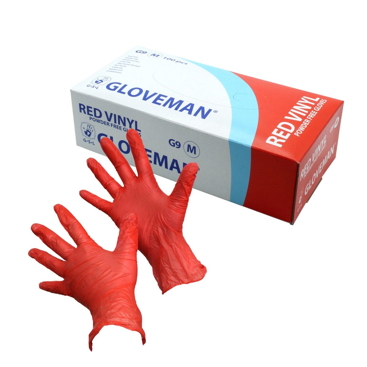 G9/L - Gloveman Powder Free Red Vinyl Gloves, 1 x 100, L